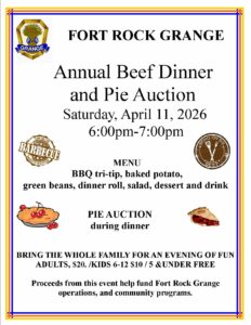 Beef Dinner and Pie Auction at Fort Rock Grange