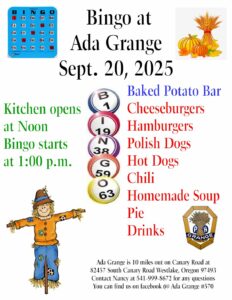TO SUBMIT A GRANGE EVENT: Email osgevents@orgrange.org with title, time, date, location, contact person info, and indication of this being a Pomona or a Community Grange event and optionally a jpeg flyer (PDF will not work). Please report any non functional emails or phone numbers to this email address