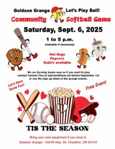 TO SUBMIT A GRANGE EVENT: Email osgevents@orgrange.org with title, time, date, location, contact person info, and indication of this being a Pomona or a Community Grange event and optionally a jpeg flyer (PDF will not work). Please report any non functional emails or phone numbers to this email address