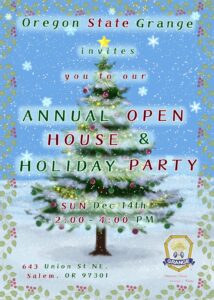TO SUBMIT A GRANGE EVENT: Email osgevents@orgrange.org with title, time, date, location, contact person info, and indication of this being a Pomona or a Community Grange event and optionally a jpeg flyer (PDF will not work). Please report any non functional emails or phone numbers to this email address