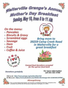 Mothers Day Breakfast at Walterville Grange