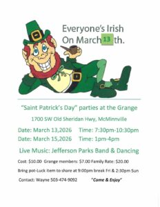 TO SUBMIT A GRANGE EVENT: Email osgevents@orgrange.org with title, time, date, location, contact person info, and indication of this being a Pomona or a Community Grange event and optionally a jpeg flyer (PDF will not work). Please report any non functional emails or phone numbers to this email address