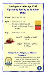 TO SUBMIT A GRANGE EVENT: Email osgevents@orgrange.org with title, time, date, location, contact person info, and indication of this being a Pomona or a Community Grange event and optionally a jpeg flyer (PDF will not work). Please report any non functional emails or phone numbers to this email address