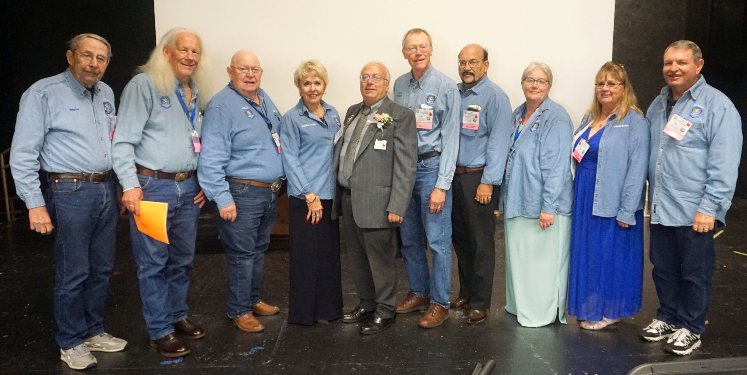 L-r: Wayne Cabler, Financial Advisor; At Large: Sam Keator, Trustee; Region 5: Dean High, Vice President; Region 2: Cookie Trupp, Trustee; OSG President: Sonny Hays-Eberts; Region 3: Joe Peters, Treasurer; At Large: Jesse O’Dell, Trustee; Region 4: Joyce Parker, Secretary; Region 1: Linda Helm, President; Region 6: David McBride, Trustee.